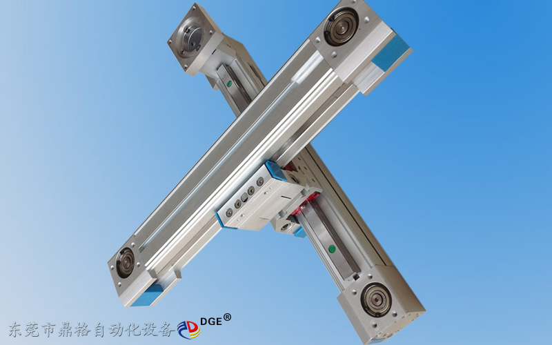 產(chǎn)品介紹 鼎格 DGE-60-TB-EG 同步帶十字滑臺,鋁合金缸體64*64mm,X軸有效行程最長6000mm,Z軸的有效行程500-800mm為最佳,水平負(fù)載能力1kg-60kg,垂直負(fù)載能力1kg-3kg,Z軸垂直使用不建議使用同步帶滑臺,有輕微的負(fù)載或運(yùn)行速度較快,方可采用同步帶滑臺作Z軸使用,傳動精度高達(dá)±0.1mm(行程1米以內(nèi)的精度),最高傳動速度5000mm/s(加減速時間200毫秒=0.2秒),同步輪20齒, 同步帶寬25mm,同步帶導(dǎo)程5M,同步輪轉(zhuǎn)一圈100m,同步輪出軸Φ15mm,滑臺總長度=有效行程+569mm,自身重量KG=6.98+0.81×行程(如行程1000mm=0.81×10)+1.8+0.82,滑臺相關(guān)配件:上銀碳鋼直線導(dǎo)軌,德國馬牌同步帶,NSK防水防塵軸承,可根據(jù)客戶行程要求設(shè)計(jì)定制.
