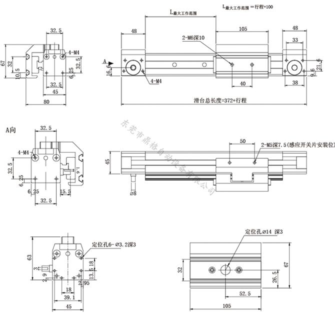 性能及注意事項 1.體 積小重量輕 采 用寬度尺寸小的鋁制底座,實現(xiàn)了輕量、緊湊的構造。高剛性、高精度、價格低、體積小、重量輕、鋁合金結構、模組化設計、滑動臺和底座經過陽極處理后,基座 與滑動臺搭配,實現(xiàn)了高剛性和負載容量。對負載負荷的變位量小,用于搭載的質量或外部負載變動的用途也能依然保持高穩(wěn)定性。 2.不銹鋼帶防塵裝置 利用獨有的密封墊片覆蓋機構,采用不銹鋼帶,可防止異物進入引動器內部。注) 帶不銹鋼帶時,由于限制了最大行程和最高速度,應加以注意。 3.個性化選擇可根據(jù)客戶的使用要求選擇各品牌電機,我司標配臺達伺服電機,根據(jù)具體的使用情況即加裝減速機或直接使用。根據(jù)不同的應用可調整: