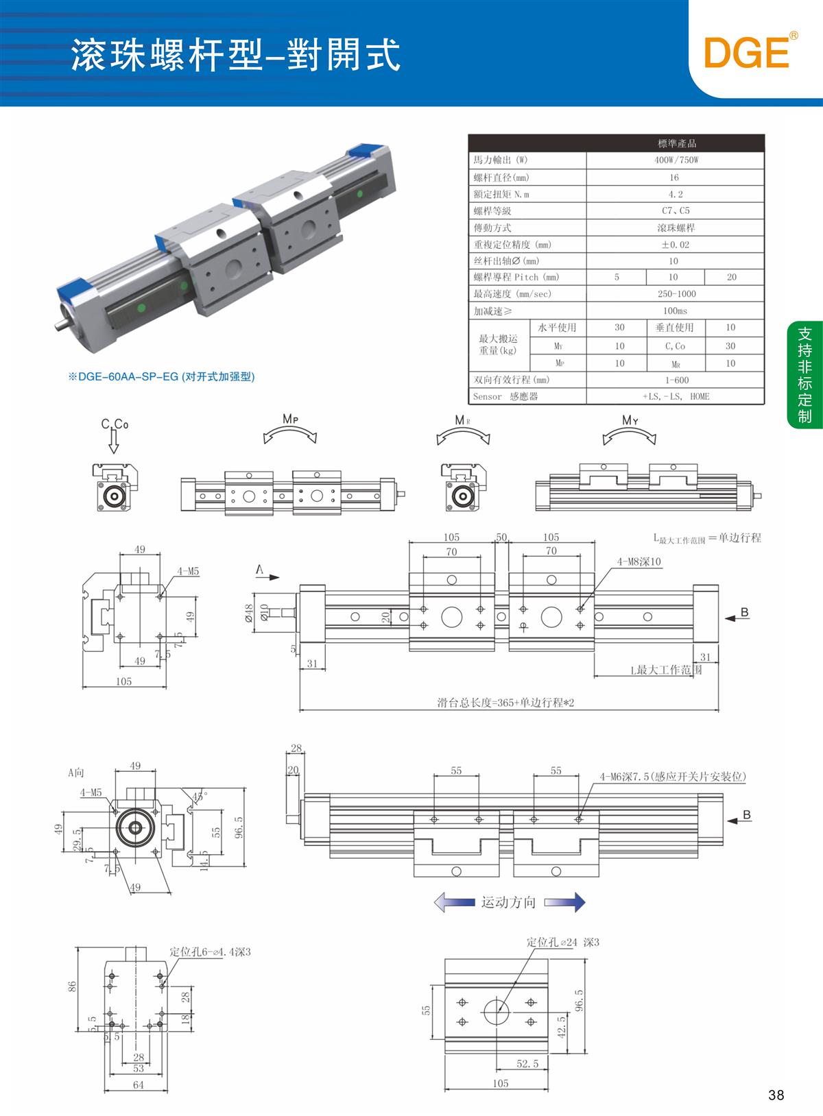 DGE-60系列提供兩種驅(qū)動(dòng)方式:滾珠絲杠驅(qū)動(dòng)適用于可重復(fù)精確定位;同步帶驅(qū)動(dòng)則適用于長(zhǎng)行程、高速、高載荷搬送。用戶可根據(jù)編碼器生產(chǎn)線的不同工位需求,靈活選擇合適的驅(qū)動(dòng)方式