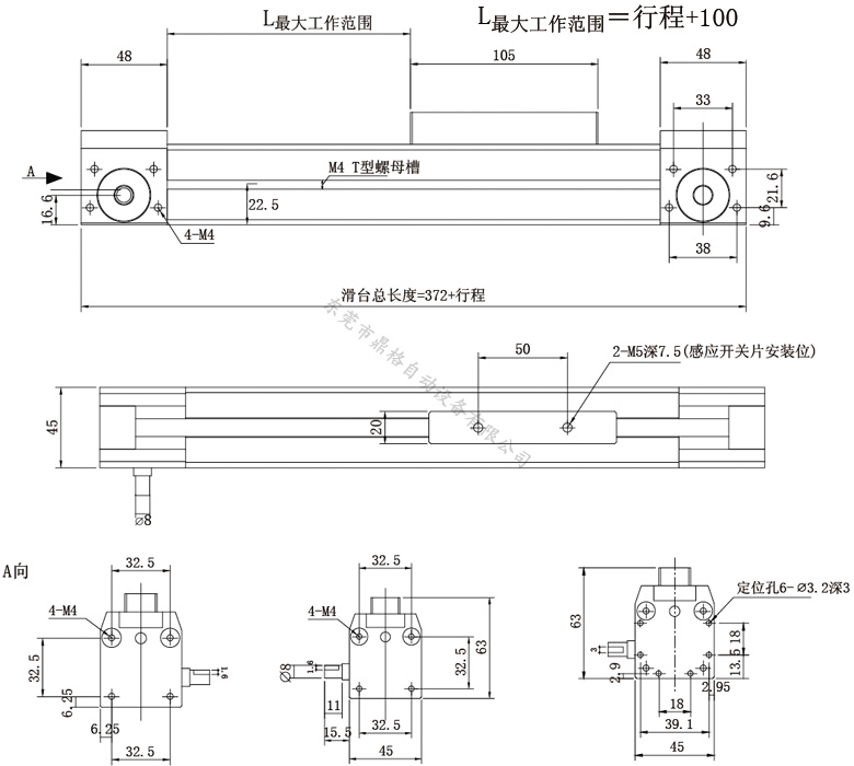 鼎格 DGE-25-TB 基本型同步帶滑臺,缸筒型材45*45mm,有效行程1-4000mm, 無負(fù)載能力,只能作為力的牽引,重復(fù)定位精度±0.1mm(行程1米以內(nèi)的精度),最高速度5000mm/s(加減速時間 0.2秒),同步輪21齒, 同步帶寬15mm,同步帶導(dǎo)程3M,同步輪轉(zhuǎn)一圈63mm,同步輪出軸Φ8mm,總長度=有效行程+372mm,重量KG=1.85+0.29×行程(如1000=0.29×10)+0.28,相關(guān)配件:美國蓋茨同步帶,NSK防水防塵軸承,可單軸使用也可多軸組合使用,DGE25基本型同步帶滑臺適用于攝影設(shè)備等等,可根據(jù)客戶行程要求設(shè)計定制.